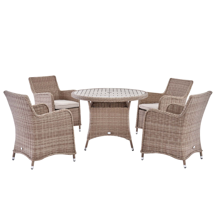 - 4-seater Round Wicker Rattan Dining Set is the perfect addition for those alfresco dinners in the garden.
